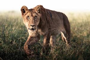 She moves deliberately, each step slow and measured, her gaze fixed on the unfamiliar presence before her. Not fearful, not aggressive—just aware. This lioness is the embodiment of wild curiosity, approaching cautiously yet drawn forward by an innate confidence.