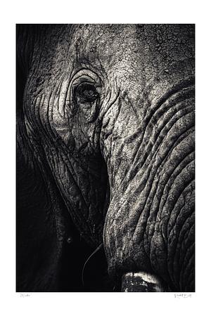 In “Wisdom,” I delve into the intricate details of an elephant bull's facial features, capturing the essence of a creature whose presence speaks volumes about life, experience, and the natural world. This close-up reveals the unique textures and subtleties of his skin, each wrinkle and scar telling a story of resilience and survival.